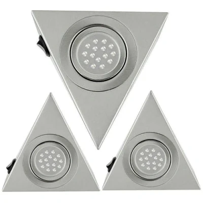 Material Quality: This Triangle LED Mains Kitchen under Cabinet Cupboard Light Kit is made of stainless-steel with a finishing of brushed chrome. It is durable and long-lasting. Ideal to illuminate a work surface. Sufficient Brightness: The Under Cabinet LED lights are bright gives an output of 250 lumens, cool white stainless steel shelf light, which perfectly meet your normal lighting, needs. Suitable for under cabinet areas. Ergonomic Design: The Kitchen Cuisine Cupboard lights feature triangular light kit shapes which are designed to be installed under kitchen cabinets to illuminate work surfaces. They can also be used in other places like hallway to match your home décor. Energy Saving: This Triangular Shelf light has low-voltage down light with a 20 W halogen G4 capsule bulb, which allows you to save over 90% electric power. Provides a warm white color temperature. Wide Applications: Kitchen cuisine cupboard light under-cabinet cupboard lights have wide range of applications, they could be used to anywhere as you desired: wardrobe, under cabinet, counter, display cabinet, work bench, bookcase, shelf, drawer, or even to your corridor.