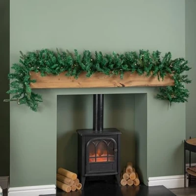 Samuel ALEXANDER 1.8m Plain Pre Lit Christmas Garland with 50 Warm White LED lights an 164 Tips, Xmas garlands Decoration for Stairs Fireplace