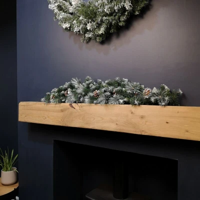 AmazonA frosted Christmas swag decoration perfect to bring the festive cheer to you home this year. Suitable to be placed anywhere around your indoor space as a feature on the mantelpiece or the staircase. With 144 tips with plain green bristles that have been decorated with pine cones and a frosted snowy effect. 90cm in length, the swag provides plenty of room to hang additional decorations to create a festive display. Shaped with a wide centre and tapered ends.