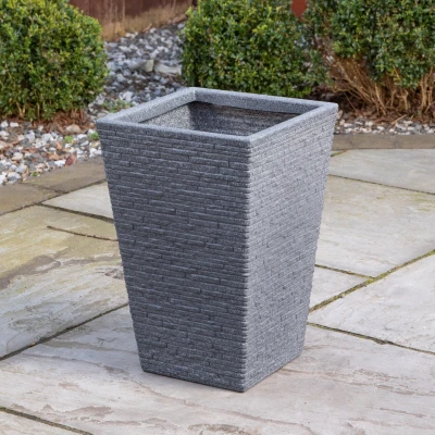 Add height, style, and impact to your planting displays with this 45cm Tall Plastic Slate Effect Ash Grey Planter. Designed to bring a sophisticated, contemporary touch to any setting, this tall planter is perfect for showcasing plants in a way that naturally draws the eye and enhances your overall space.. Constructed from durable plastic, the planter offers a lightweight design that makes it easy to position and move as needed. The ash grey colour delivers a modern and understated look, allowing it to blend seamlessly with a wide range of existing furniture and décor styles.. Built to withstand the elements, the planter is made from frost-resistant material, ensuring reliable performance throughout the year. Finished with an attractive slate effect, the planter mimics the natural texture and appearance of stone while retaining the practical benefits of plastic.. Suitable for indoor and outdoor use.. Product Specifications. Height: 45cm Length: 30cm Width: 30cm
