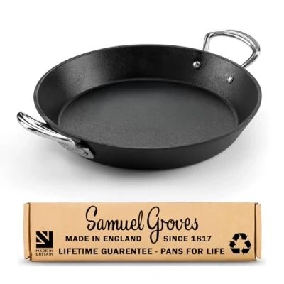 Embrace the benefits of traditional cast iron cooking with the Samuel Groves Britannia Cast Iron Double Handled Skillet and elevate your culinary creations to new heights, all while enjoying durable and reliable performance for years to come.