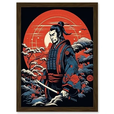 Samurai Master in Winter Sunset Landscape Rockabilly Americana 50s Artwork Framed A3 Wall Art Print