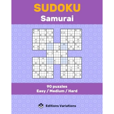 Samurai Sudoku 90 puzzles: Easy / Medium Hard. For beginners to advanced players. With rules and solutions.