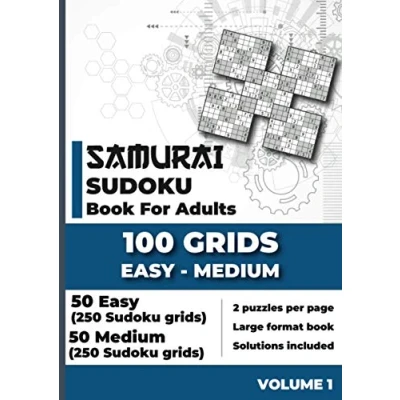 Samurai Sudoku book for Adults 100 Grids Easy Medium: Big of with puzzles (500 Sudoku) and Medium difficulty levels Solutions included