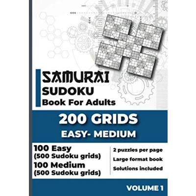 Samurai Sudoku book for Adults 200 Grids Easy Medium: Big of with puzzles and Medium difficulty levels Solutions included