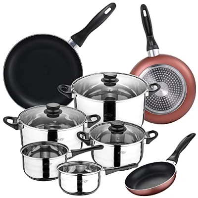San Ignacio 8 Piece Stainless Steel Cookware Set + 3 Frying Pans Ø16/20/24 cm Pressed Aluminium, Suitable for Induction