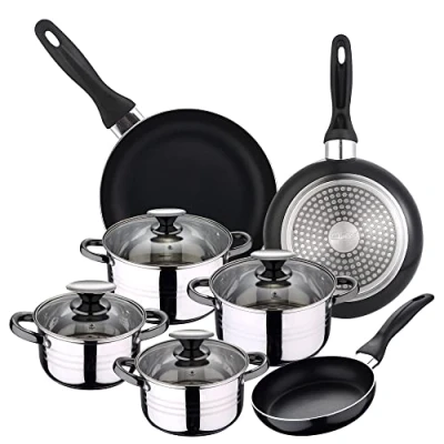 SAN IGNACIO Kitchen Pan and Saucepan Set, Aluminium, Black, Stainless Steel