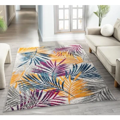 San Marino Modern Living Room Area Rug Cut Pile Weaving Jute Backing Abstract Floral Traditional Design Low Rug, Multi Coloured, 160x230 cm