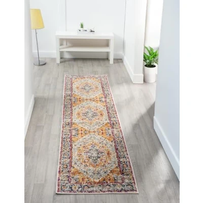 San Marino Modern Living Room Area Rug Cut Pile Weaving Jute Backing Abstract Floral Traditional Design Low Rug, Multi Coloured, 60x220 cm