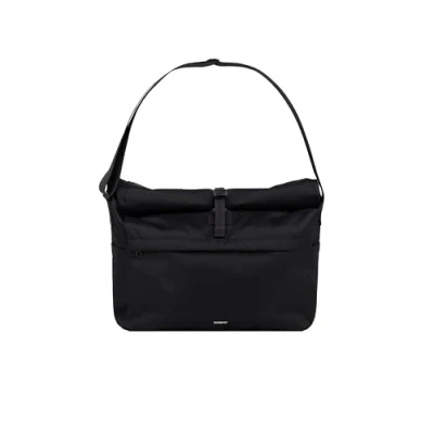 Messenger bag in polyester Ways to carry: Crossbody Laptop pocket: Yes, 14, 40x26 cm External pockets: Zipper pocket Internal pockets: Zipper pocket & 14 laptop pocket Closure: Rolltop secured with hook Strap length: 120 cm, adjustable Water resistant: Yes Measurements Height: 49 cm Width: 40 cm Depth: 16 cm Capacity: 29 L Weight: 600g