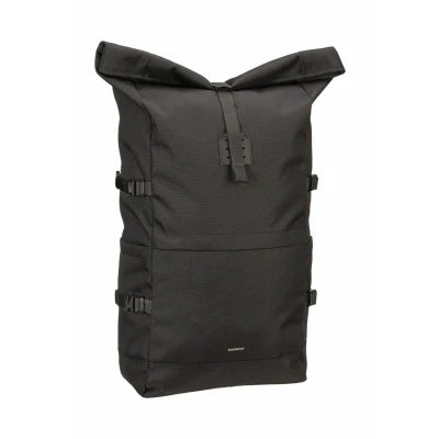 Sandqvist Men's Icon Large Rolltop Backpack, Black With Leather, One Size