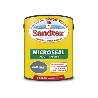 Sandtex Microseal Smooth Masonry paint provides up to fifteen years of ultra-durable weather protection for exterior walls. Featuring advanced Microseal technology, this breathable coating allows moisture to escape while preventing rain from soaking into the substrate. Its dirt-resistant and fungicidal formula keeps surfaces clean by inhibiting mold and algae growth. This paint is rainproof in just one hour and offers excellent coverage on render, concrete, and pebbledash. Easy to apply and highly flexible, it resists cracking, peeling, and flaking over time. It delivers a professional-grade, smooth finish that maintains its color and integrity against the harshest environmental conditions.