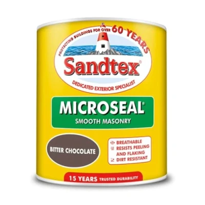 General description Sandtex Microseal Smooth Masonry Paint is designed to protect and beautify your home. Engineered with advanced microporous technology, this paint forms a seal against water ingress while allowing surfaces to breathe, ensuring long-lasting protection and a stunning finish. Technical specifications Volume: 2.5L Coverage: 12-16 square meters per litre Number of Coats: 2 for optimal protection Drying Time: Touch dry in 3-4 hours; re-coat in 3-4 hours Usage Application Methods: Suitable for brush, roller, or spray application Suitable Surfaces: Ideal for most sound, dry exterior surfaces including render, roughcast, pebbledash, concrete, building blocks, facing bricks, and previously painted surfaces Not suitable for: Common, Fletton, or engineering type bricks Other information 15 Years Trusted Durability: Extended protection for your home Microporous & Breathable: Prevents water penetration while allowing moisture to evaporate Mould & Algae Resistant: Protects against