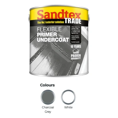General description This high-performance, flexible, solvent-based primer undercoat provides superior protection for exterior wood and metal surfaces. Sandtex Trade Flexible Primer Undercoat creates the perfect base for long-lasting Eggshell and Gloss finishes, ensuring enhanced adhesion and durability. Technical specifications Volume: 1L Drying Time: Touch dry in 4-6 hours; ready for recoat in 16-24 hours Usage Number of Coats: Apply 1 coat for effective priming and undercoating Application Methods: Suitable for application by brush or roller