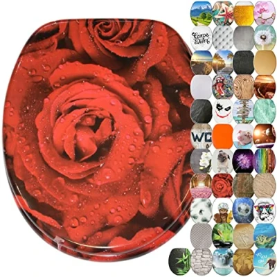 Top quality ✓ The toilet seat is made of sturdy and break-resistant wood. Thanks to the special workmanship and the quality materials, the lid offers a very comfortable seat Practical ✓ The integrated soft-closing mechanism closes the toilet lid gently and quietly. This protects the surface of the toilet seat and increases the longevity of the product Universal ✓ The shape of the toilet lid means that it fits all standard wall-hung and floor-standing toilet bowls and can be easily attached with the help of the mounting material included Stylish ✓ The toilet seat is available in various creative motifs and is ideal for adapting a bathroom to one's own wishes, giving it an individualized look Easy to clean ✓ The toilet seat has a special antibacterial surface and can be cleaned easily with all household cleaners, Manufacturer: SANILO