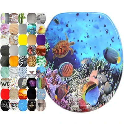 Top quality ✓ The toilet seat is made of sturdy and break-resistant wood. Thanks to the special workmanship and the quality materials, the lid offers a very comfortable seat. Universal ✓ The shape of the toilet seat means it fits all standard wall-hung and floor-standing toilet bowls and can be easily attached with the help of the mounting material included. Stylish ✓ The toilet seat is available in various creative motifs and is ideal for adapting a bathroom to one's own wishes, giving it an individualized look. Practical ✓ There are many different products to combine with the toilet seat. A matching bath rug, shower curtain, drain plug and laundry basket can transform your bathroom into a wellness oasis. Easy to clean ✓ The toilet seat has a special antibacterial surface and can be cleaned easily with all household cleaners., Manufacturer: SANILO