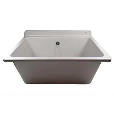 Sanit Washing Trough with Overflow (Grey, Made of Impact Resistant Plastic, Capacity 35 litres, incl. Drain Valve, Strainer, Plug Chain, mounting kit) 60.003.66.0099, White