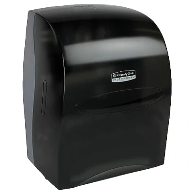 The Sanitouch Hard Roll Paper Towel Dispenser (in Black), by Kimberly-Clark Professional, is a high-capacity wall mount system for less maintenance time, run-outs and complaints Hygienic, touchless paper towel roll dispensing – your washroom guests will only need to touch the towel they use One-at-a time, hands free pull dispensing for controlled usage and less waste Durable, high-impact plastic dispenser gives you a smooth and quiet operation, with no batteries needed Use with universal hard roll towels with a 1.5” core (check out compatible Scott and Kleenex Brand paper towels)