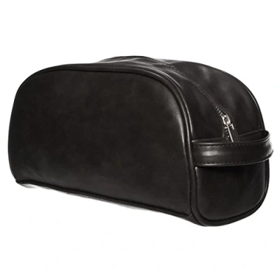 Sanjo Large Leather look Wash Bag, Black, 25 cm