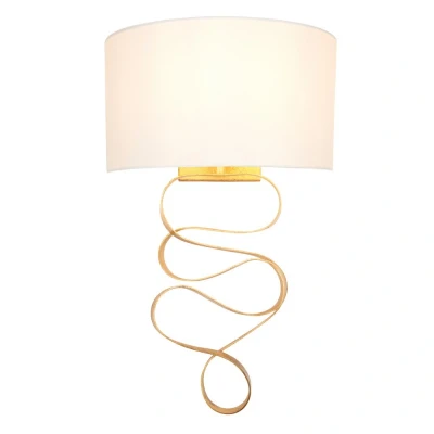 The ribbon-like detail of the Sanremo Gold Leaf and Ivory Cotton Fabric Wall Lamp makes it a wonderful choice for visual interest. The fabric shade diffuses the light for lovely illumination and the gleaming finish adds sophisticated shine to the overall contemporary look.
