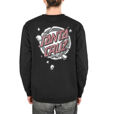 * The Santa Cruz Roskopp Destruct Dot crew neck sweatshirt features Santa Cruz details across the chest and on the rear * A black poly-cotton fabrication with multi-colour details * Elasticated and ribbed hem, cuffs and side panelling * Fit is regular and true to size * Materials: 80% Cotton / 20% Polyester * Model is 5' 10" and of a slim build wearing a size Medium