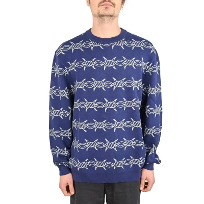 * The Santa Cruz Wired knitted jumper is a classic knitted fabrication, designed to be a warm layer on colder days * A blue cotton construction with bold, white details placed all over * Medium weight * Santa Cruz tag at the bottom of the hem * Materials: 100% Cotton * Fit: Regular through the shoulders and body, and we recommend taking your usual size * Model is 5'10" and of a slim build, wearing a Medium