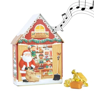 Santa's Workshop Musical Souvenir Tin Filled with Devon Toffee Sweet Individually Wrapped Sweets, Novelty Tins Festive Sweets Luxury Christmas Treats Gift Box