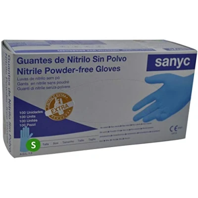 Nitrile glove, dust free, non-sterilised. Blue. Small 1 x 100pcs, Weight: 1.2345886672 pounds, Manufacturer: Sanyc