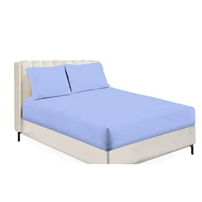 Sapphire Collection Fitted Sheet Non Iron Percale 180 Thread Count Polycotton Plain Sheets (King, Blue)