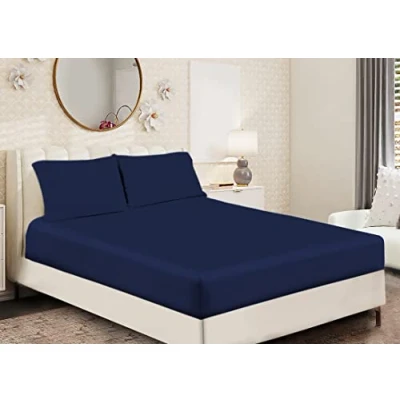 Sapphire Collection Fitted Sheet Non Iron Percale 180 Thread Count Polycotton Plain Sheets (King, Navy)
