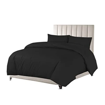 Sapphire Collection Luxury 100% Egyptian Cotton Duvet Quilt Cover & Pillowcase Bedding Set (Black, Single)