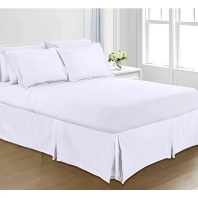 Sapphire Collection PLAIN DYED POLY COTTON PLEATED PLATFORM BASE VALANCE SHEETS (Double, White)