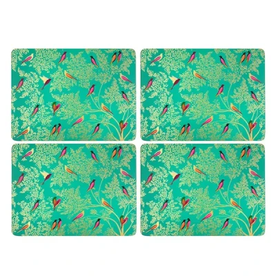 Sara Miller Chelsea Collection Set of 4 Placemats in Green - each large placemat measures 30.5cm x 23cm and is made of thick 5mm board, to ensure longevity.The coating is stain and heat resistant up to 100°C and each large placemat has a cork backing to protect furniture and work surfaces.Wipe clean with a damp cloth.Part of the Sara Miller Chelsea Collection - an enchanting collection that's bright and beautiful with stunning gold detailing. Sara Miller is an award-winning British designer who expresses her passion for travel through her art.