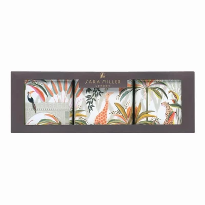 ELEGANT GIFT SET: Three square tin caddies featuring Sara Miller London's stunning Palm design with exotic animals, tropical foliage, and vibrant botanical illustrations PERFECT SIZE: Each caddy measures 105 x 105 x 105 millimetres, ideal for storing tea, coffee, biscuits, sweets, or small kitchen essentials whilst keeping contents fresh PREMIUM TIN CONSTRUCTION: Made from durable tin material with beautiful multi-coloured decorative finish that adds a touch of luxury to any kitchen or dining space VERSATILE STORAGE SOLUTION: Set of 3 matching caddies provides coordinated organisation for pantry items, craft supplies, or small accessories in home or office CARE INSTRUCTIONS: Hand wash only to preserve the decorative finish; not dishwasher or microwave safe. Packaged dimensions: 19.5 x 15.4 x 7.5 centimetres