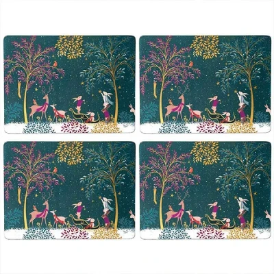 Bring the whimsical charm of the festive season to your home with this set of 4 Woodland Tales large placemats from the Sara Miller London Woodland Tales collection.Made from MDF each of these placemats feature a practical cork backing to protect your surfaces from spills and stains.Each of the 4 placemats feature a unique scene of woodland animals celebrating the season in a glorious winter wonderland setting.Designed in the UK. Dimensions (each placemat): 0.58(H) x 40.1(W) x 29.8(D)cm.