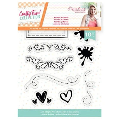 Pack contains 10 individual acrylic stamps This stamp set will enable you to creative beautiful patterns and frames on your papercraft projects Co-ordinates beautifully with the Sara Signature Crafty Fun Range, offering you a complete papercraft range for all ability levels These stamps are acid & lignin free