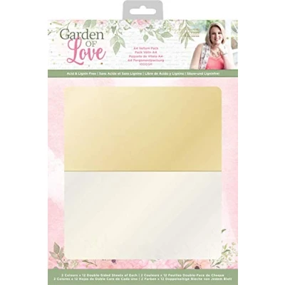 Pack contains 24 sheets of 100gsm A4 Vellum 12 double-sided sheets of both colours in the pack Acid & Lignin Free Co-ordinates beautifully with the Sara Signature Garden of Love Range, offering you a complete papercraft range for all ability levels