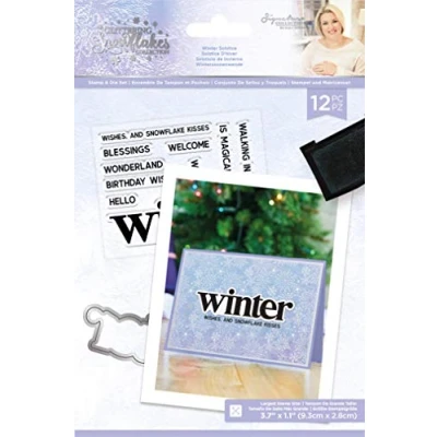 Pack includes 1 metal cutting die & 1 acrylic stamp Metal Cutting Die size is approx 3.7" x 1.1" (9.3cm x 2.8cm) Designed to co-ordinate beautifully with the Sara Signature Glittering Snowflake Collection
