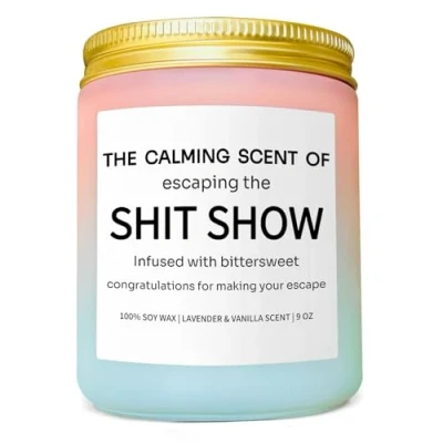 Our lavender & vanilla candles are made with premium essential oils; This classic fragrance of fresh lavender, blended with warm vanilla, creates a sweet herbal medley that calms and quiets the mind These scented soy candles have a long burn time of up to 50 hours; Each of them is made with natural soy wax and a lead-free cotton wick for a clean and even burn 9 oz aromatherapy candle comes with a reusable glass jar and a lid; This jar candle comes in a giftable box that will surely put a smile on the recipient's face Whether you want to celebrate a milestone, express feelings, or make someone's day, our scented candles with hilarious messages are the perfect unique gifts for women and men This funny coworker candle is a fun gift idea for your best friend, colleague, work bestie, work bff, boss, employee, supervisor, teacher, nurse, retired people, or anyone who is moving or leaving