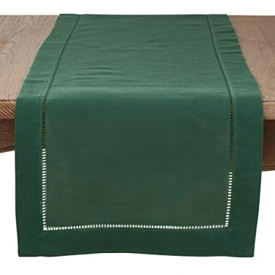 SARO LIFESTYLE 6307.JG1690B Rochester Collection Table Runner with Hemstitched Border, Polyester, Jasper Green