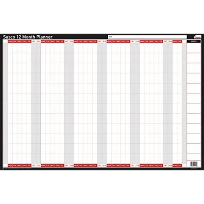 Sasco 20012 Board Mounted 12 Month Undated A1 Wall Planner, 610 x 915 mm (H W)