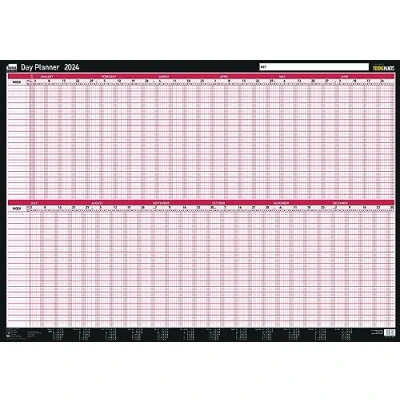 Sasco 2024 Daily Planner, Yearly Wall Planner Set, Large Whiteboard Style Dry Erase Calendar, Board Mounted Pen & Stickers, Black/Red, 915x610mm, 2410224