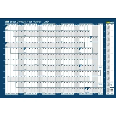 2024 Dry Erase Board: See all your planned events and daily activities all year, from January to December, at a glance with this small A3 whiteboard sized weekly planner from Sasco Landscape Dry Erase Calendar: Easy to view mini white board style grid with plenty of space to write, featuring days running horizontally across the top and months down the side Diary Memo Board With Accessories: The dry wipe board surface is printed on high quality 130gsm paper and laminated so it's easy to 'wipe and rewrite', with dry wipe pen and stickers included Family, Staff or Personal Organiser: Lightweight and compact office notice board, daily planner, annual leave, meeting, shift rota or hot desk organiser with UK & ROI bank holidays marked Contents: 1 x Sasco 2024 Compact Year Wall Planner, poster style daily planner, Blue, measures W400 x H285mm, with wet wipe marker pen, pen clip and sticker pack included (2410217)