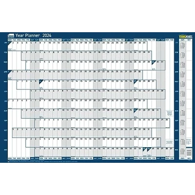 2024 Dry Erase Board: See all your planned events and daily activities all year, from January to December, at a glance with this essential wall-mountable weekly planner from Sasco Landscape Dry Erase Calendar: Easy to view large white board style grid with plenty of space to write, featuring days running horizontally across the top and months down the side Diary Memo Board With Accessories: The dry wipe board surface is mounted on durable cardboard and laminated so it's easy to 'wipe and rewrite', with dry wipe pen and stickers included Family, Staff or Personal Organiser: Lightweight office notice board, daily planner, annual leave, meeting, shift rota or hot desk organiser with UK & ROI bank holidays marked Contents: 1 x Sasco 2024 Original Year Wall Planner, board mounted daily planner, Blue, measures W915 x H610mm, with wet wipe marker pen, pen clip, sticker pack and mounting pads included (2410214)