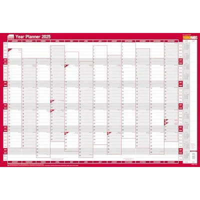 2025 Dry Erase Board: See all your planned events and daily activities all year, from January to December, at a glance with this large whiteboard-sized vertical weekly planner from Sasco Poster Style Dry Erase Calendar: Easy to view whiteboard style grid with plenty of space to write, featuring days running horizontally across the top and months down the side Diary Memo Board With Accessories: The dry wipe board surface is printed on high-quality 130gsm paper and laminated so it's easy to 'wipe and rewrite', with a dry wipe pen and stickers included Family, Staff or Personal Organiser: Lightweight office notice board, daily planner, annual leave, meeting, shift rota or hot desk organiser with UK & ROI bank holidays marked Contents: 1 x Sasco 2025 Vertical Year Wall Planner, poster style daily planner, Blue, measures W915 x H610mm, with wet wipe marker pen, pen clip and sticker pack included (2410243)