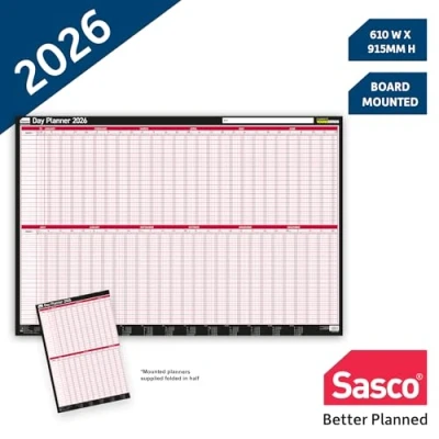 NEW & IMPROVED ACCESSORY KIT – 392 stickers including 244 icon dots and148 sticker strips, that help you highlight holidays, meetings, deadlines, and more with ease; Plus, Wet wipe marker with pen clip, so your pen is always at hand; TRACK DAILY ACTIVITIES – January to December 2026 with daily columns for projects, staff, or equipment DETAILED LAYOUT FOR PLANNING – Displays the complete year by week with index space for up to 40 staff or projects BOARD MOUNTED & LAMINATED – Durable design for wipe-clean updates; optional mounting rails available SUPPORTS YOUNGMINDS CHARITY – Every purchase helps fund mental health support for children and young people in the UK CONTENTS: x1 Delivered Folded – 2026 Wall Planner, convenient bulk pack for teams and workplaces – 2410271