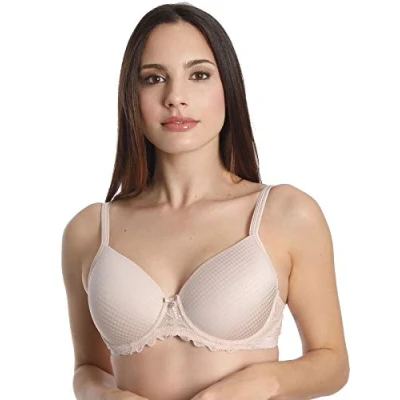AmazonPretty cup bra made from soft microfibre with houndstooth pattern and fabric-covered straps at the front. The feminine look is supported by lace border along the cup.