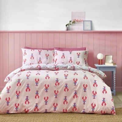 Sassy B Lobster Stripe Reversible Single Duvet Cover Set with Pillowcase Pink/Blue