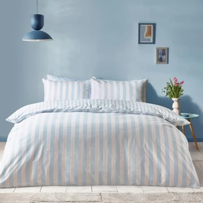 Sassy B Stripe Tease Reversible Double Duvet Cover Set with Pillowcases Blue