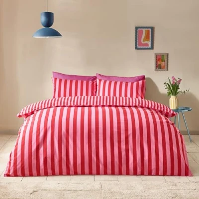 Sassy B Stripe Tease Reversible Double Duvet Cover Set with Pillowcases Red